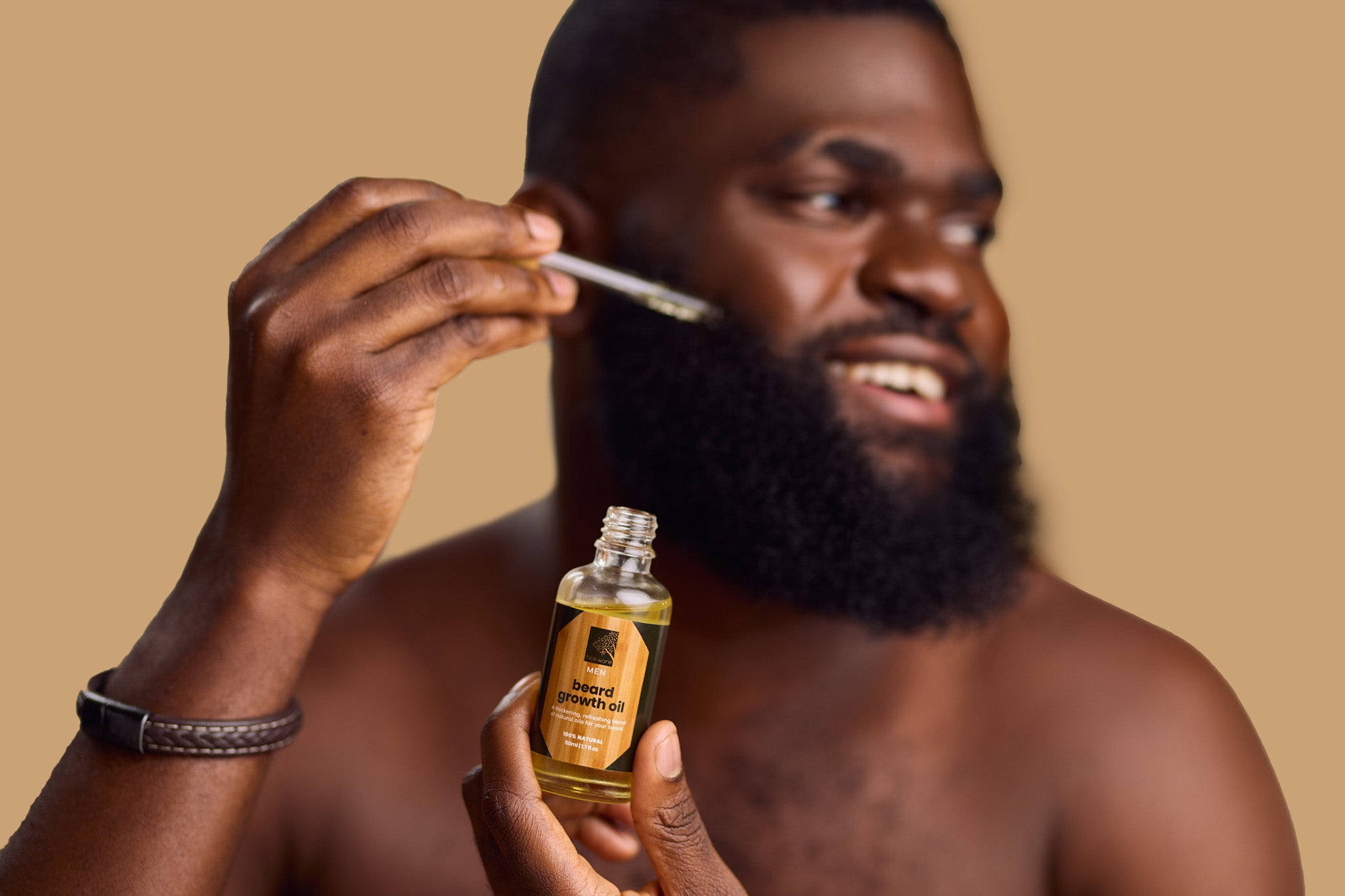 For Skin: Apply 2–4 drops (more for longer or thicker beards) into palms and massage through damp or dry beard, starting at the roots and working outward. Gently shape and style as desired. Use daily for best results