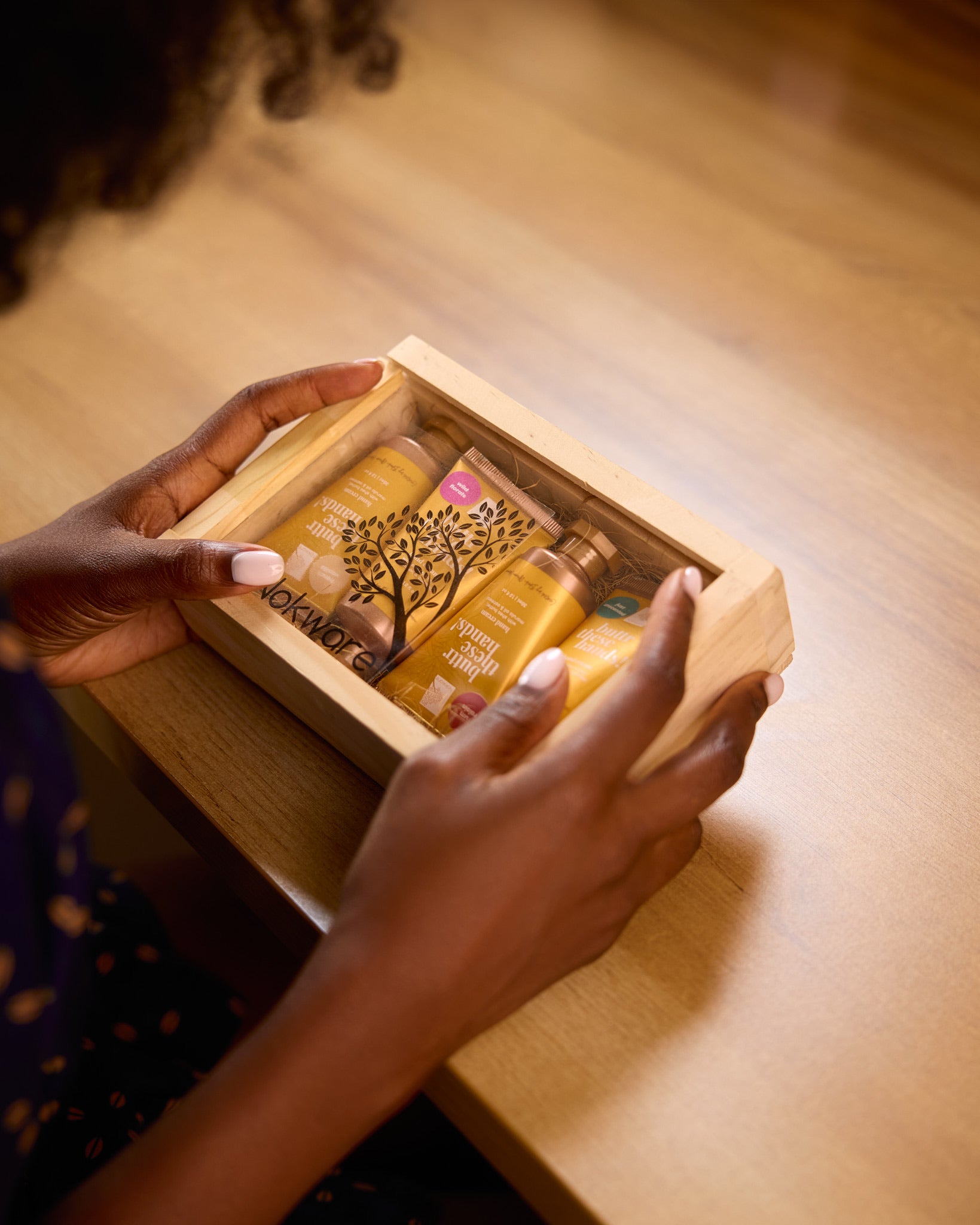 Our corporate boxes bring together Africa’s most trusted skincare staples, handcrafted in Ghana with ethically sourced African ingredients. Each set is beautifully housed in our signature wood keepsake box, handmade by local artisans and designed to be reused long after the last product is finished.